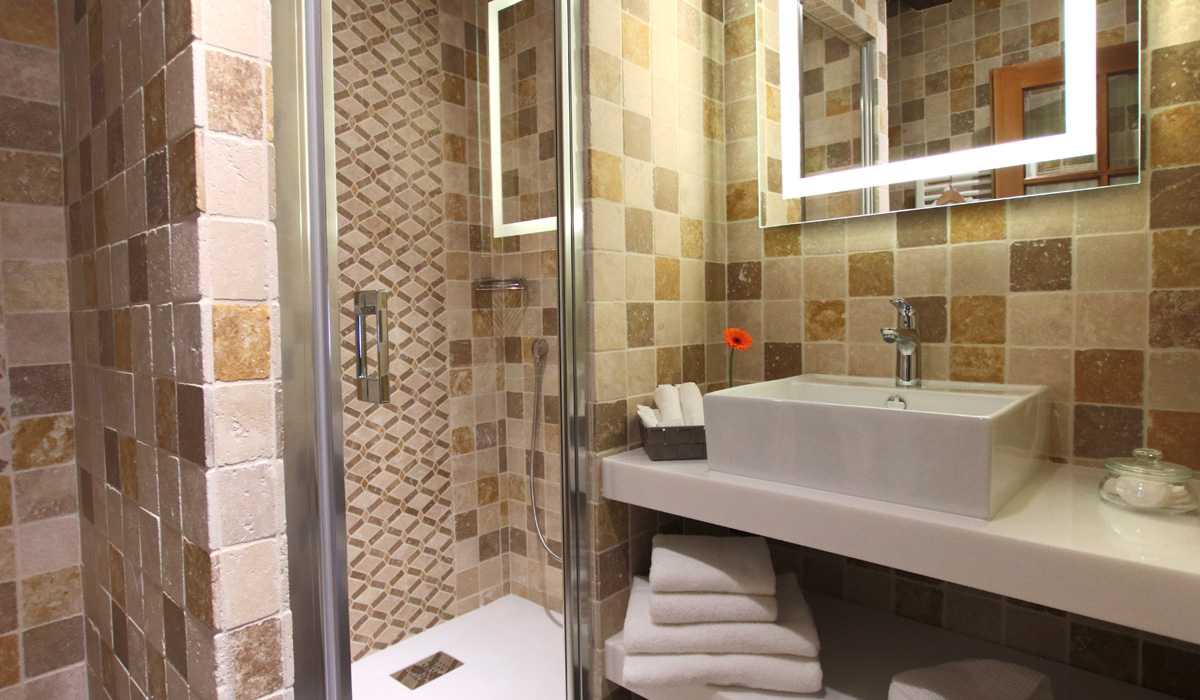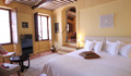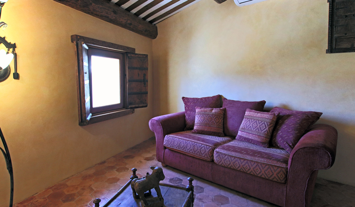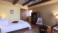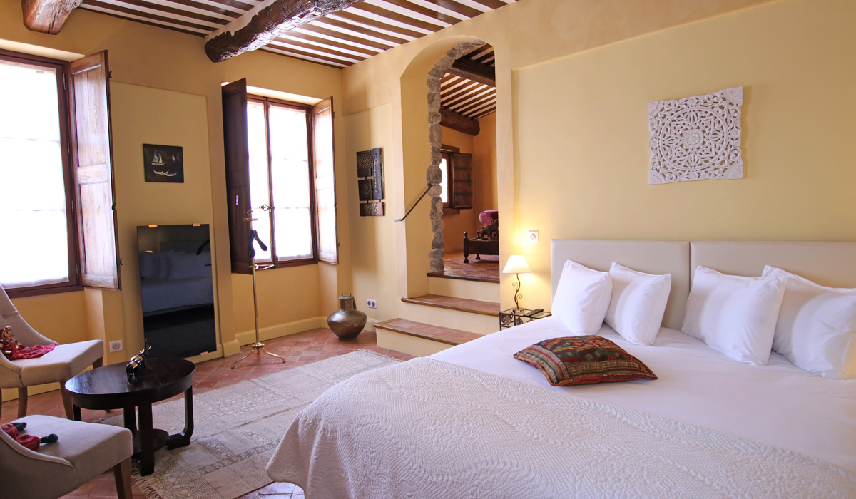 Suite de 35m2, deuxième étage, avec lit de 180, salon privé, TV écran plat, climatisée et vue sur jardin, salle de douche et wc.